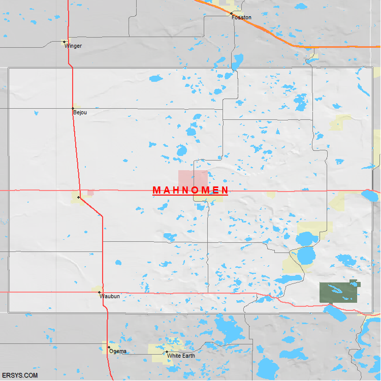 The estimated population of Mahnomen County is 5,252 with 1,957 households. These households are spread across 11 unique municipalties (not all shown).