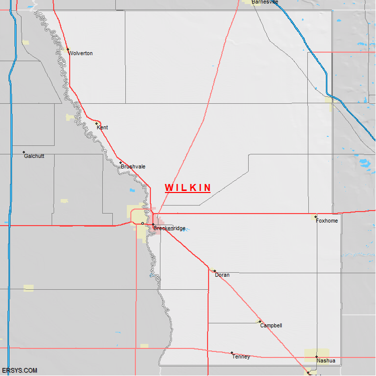 The estimated population of Wilkin County is 6,420 with 2,700 households. These households are spread across 8 unique municipalties (not all shown).