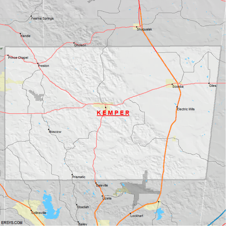 The estimated population of Kemper County is 9,044 with 3,407 households. These households are spread across 3 unique municipalties (not all shown).