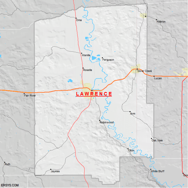 The estimated population of Lawrence County is 12,042 with 4,834 households. These households are spread across 3 unique municipalties (not all shown).