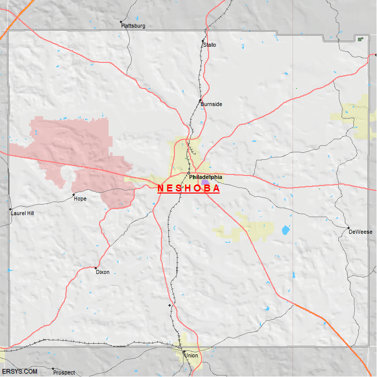 The estimated population of Neshoba County is 29,182 with 10,891 households. These households are spread across 4 unique municipalties (not all shown).