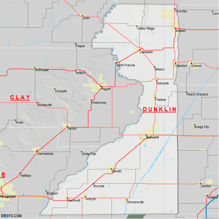 The estimated population of Dunklin County is 27,710 with 11,340 households. These households are spread across 13 unique municipalties (not all shown).