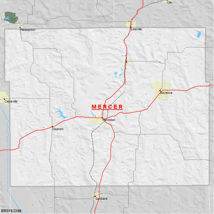 The estimated population of Mercer County is 3,576 with 1,472 households. These households are spread across 4 unique municipalties (not all shown).