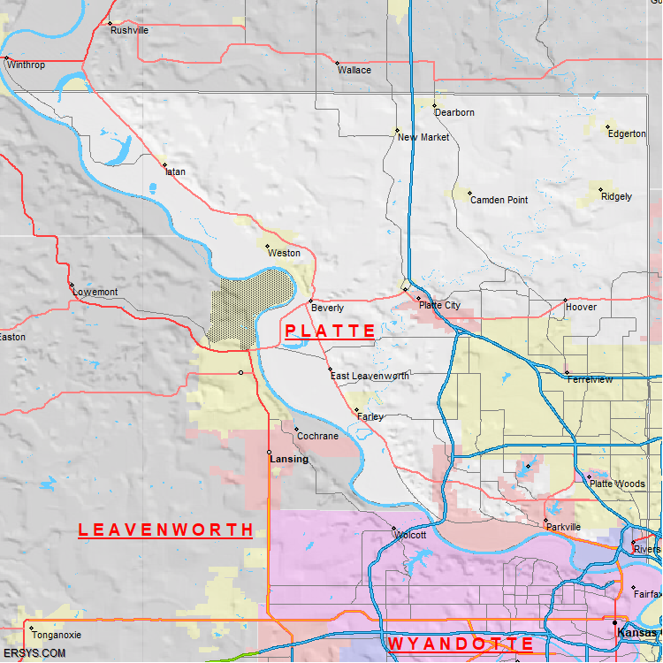 The estimated population of Platte County is 114,111 with 45,341 households. These households are spread across 18 unique municipalties (not all shown).