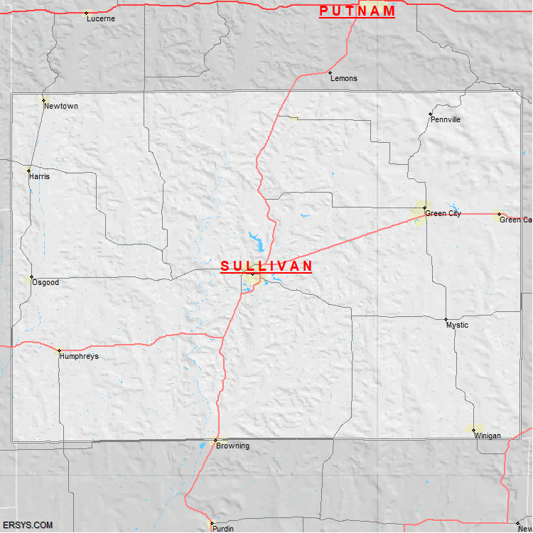 Sullivan County, MO (shown in white) has 647.98 mi² of land area and 3.52 mi² of water resources. The county is bordered by:
