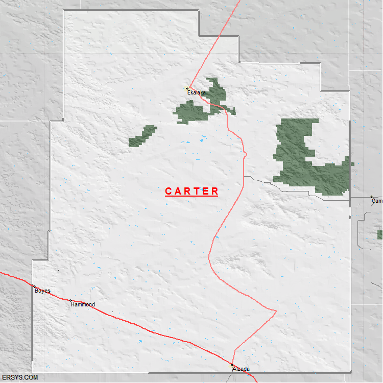The estimated population of Carter County is 1,424 with 597 households. These households are spread across 2 unique municipalties (not all shown).