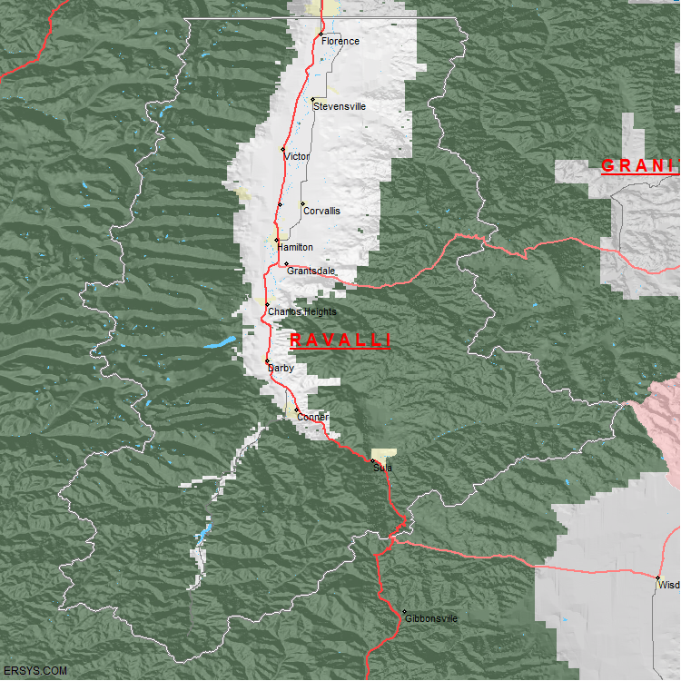 The estimated population of Ravalli County is 47,583 with 20,164 households. These households are spread across 10 unique municipalties (not all shown).