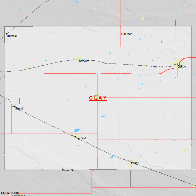 Clay County, NE (shown in white) has 572.29 mi² of land area and 1.25 mi² of water resources. The county is bordered by: