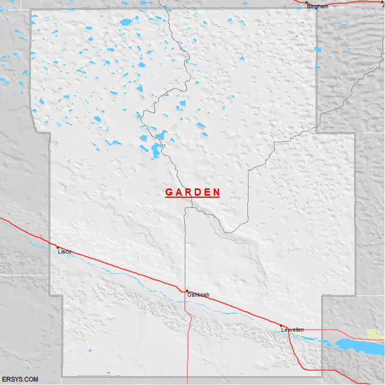The estimated population of Garden County is 1,876 with 885 households. These households are spread across 3 unique municipalties (not all shown).