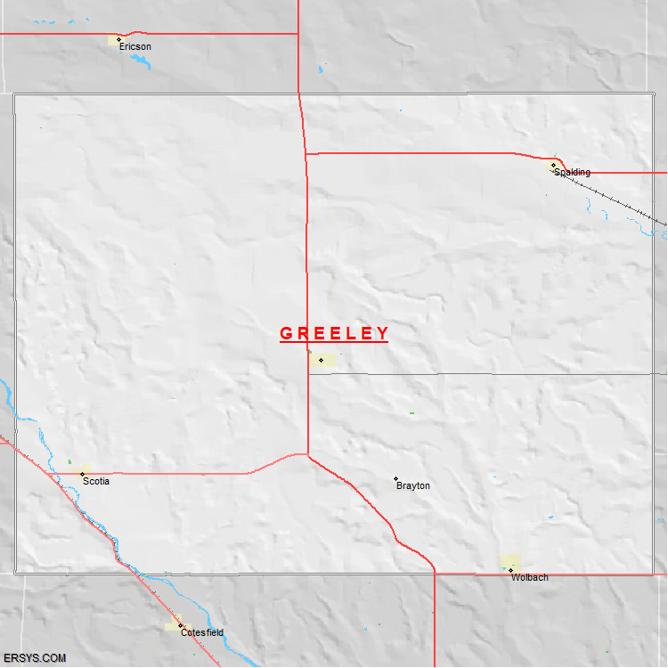 The estimated population of Greeley County is 2,194 with 952 households. These households are spread across 4 unique municipalties (not all shown).