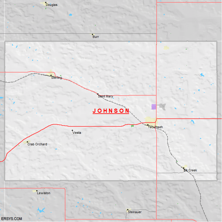 The estimated population of Johnson County is 5,347 with 1,821 households. These households are spread across 5 unique municipalties (not all shown).