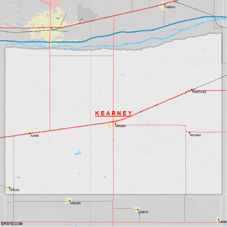 The estimated population of Kearney County is 6,842 with 2,792 households. These households are spread across 5 unique municipalties (not all shown).