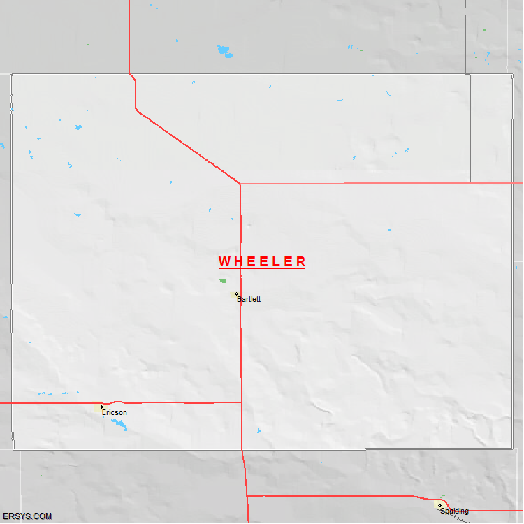 The estimated population of Wheeler County is 774 with 343 households. These households are spread across 2 unique municipalties (not all shown).