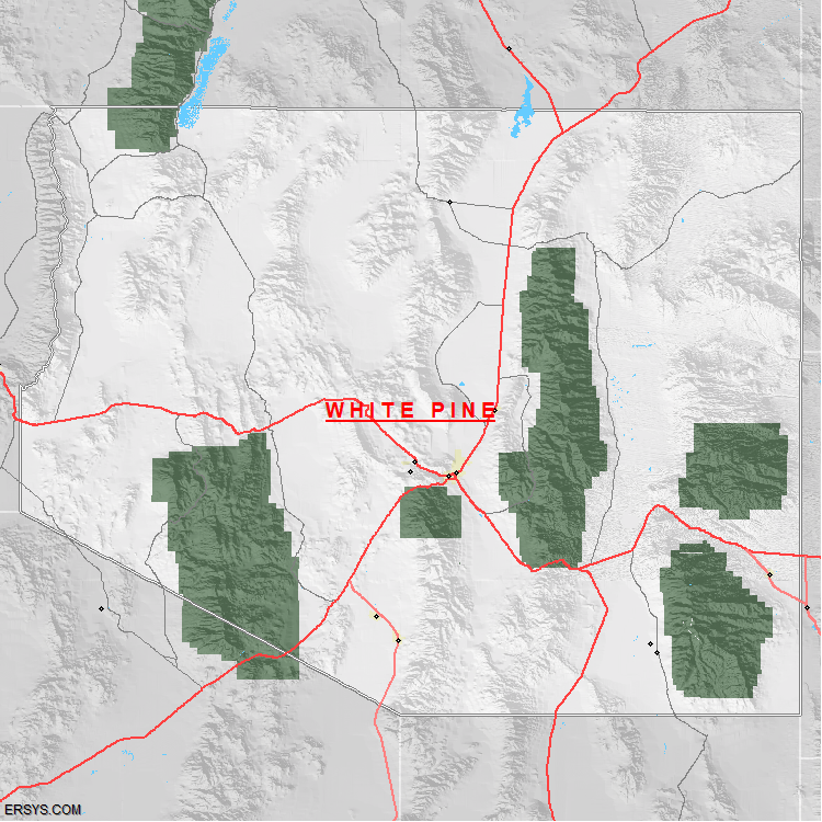 The estimated population of White Pine County is 9,235 with 3,415 households. These households are spread across 6 unique municipalties (not all shown).