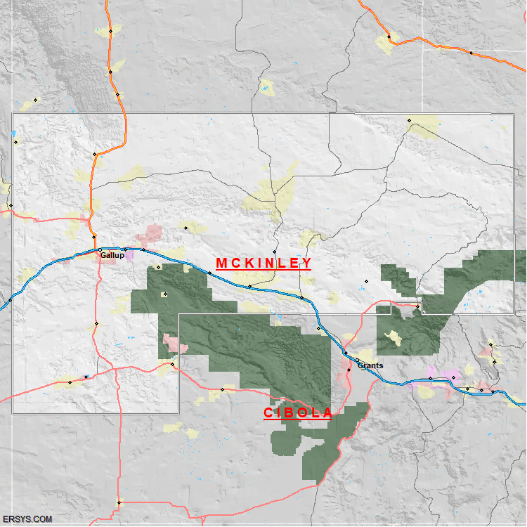 The estimated population of McKinley County is 69,785 with 21,611 households. These households are spread across 43 unique municipalties (not all shown).