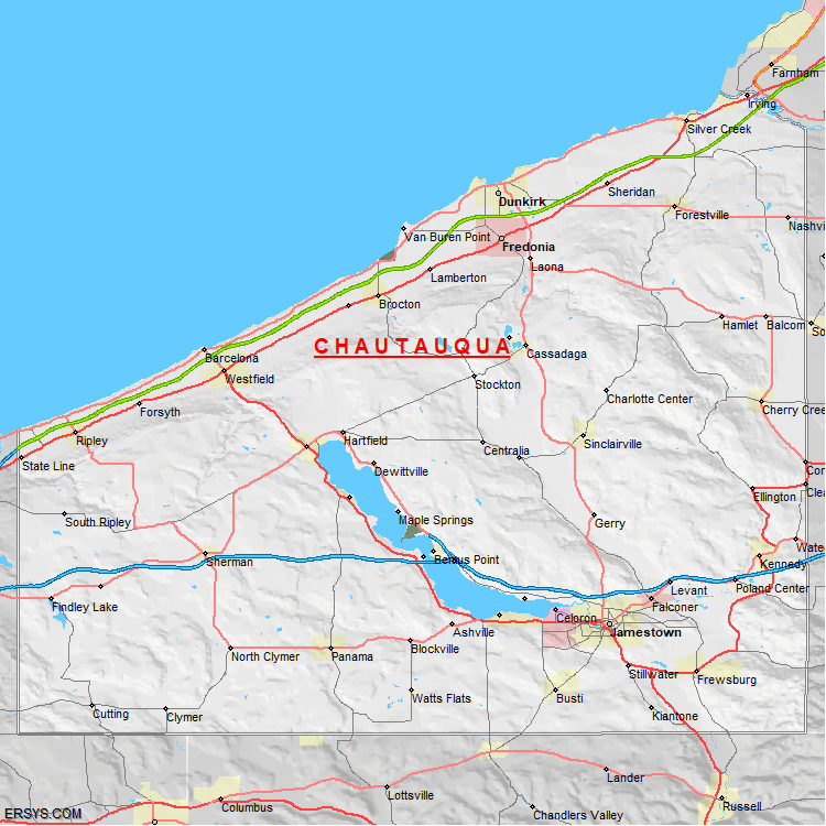 Chautauqua County, NY (shown in white) has 1,060.41 mi² of land area and 439.78 mi² of water resources. The county is bordered by: