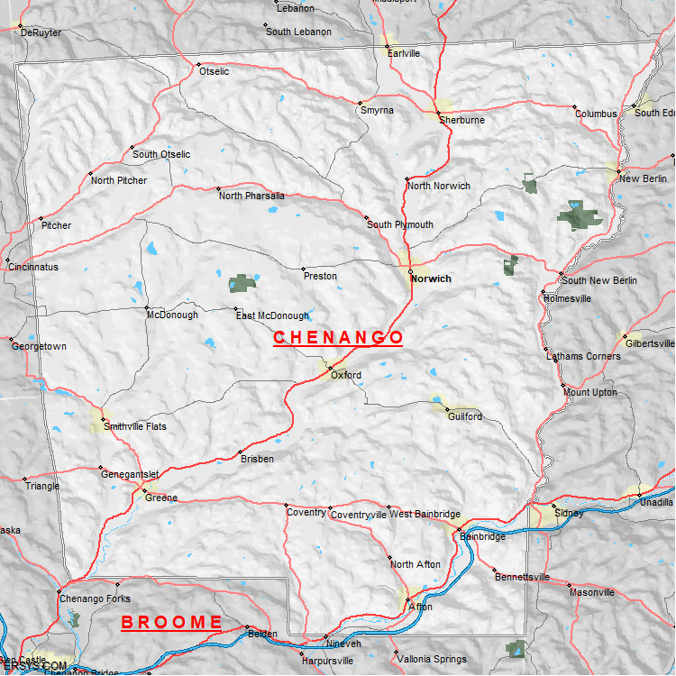 Chenango County, NY (shown in white) has 893.44 mi² of land area and 5.19 mi² of water resources. The county is bordered by: