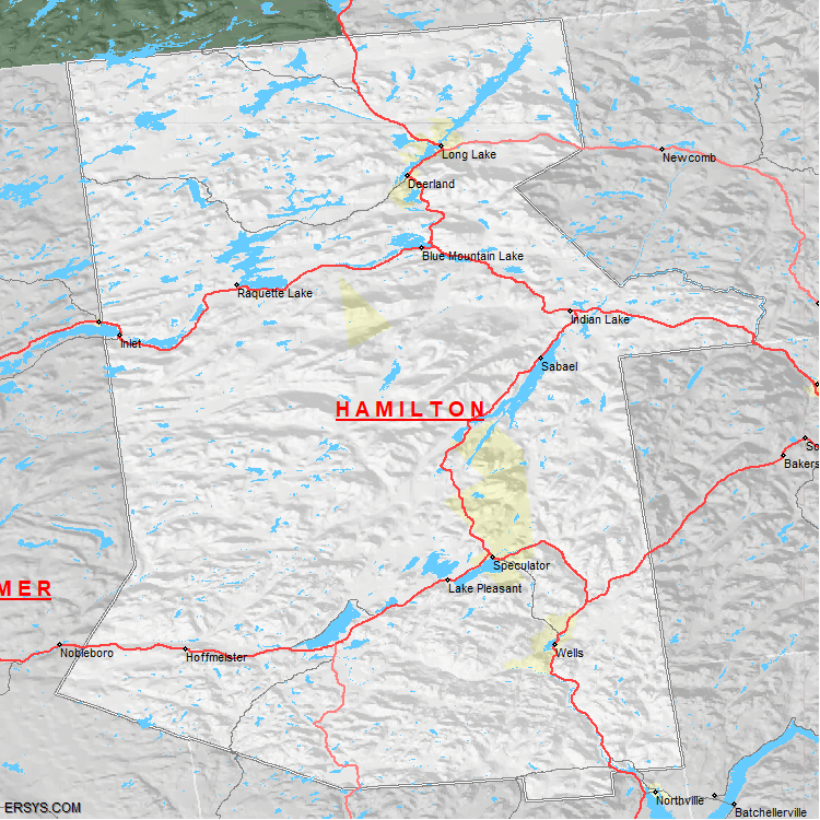 Hamilton County, NY (shown in white) has 1,717.38 mi² of land area and 90.43 mi² of water resources. The county is bordered by: