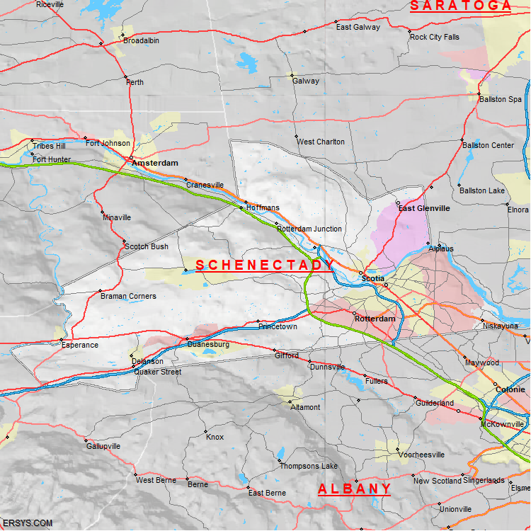 The estimated population of Schenectady County is 161,213 with 66,438 households. These households are spread across 9 unique municipalties (not all shown).