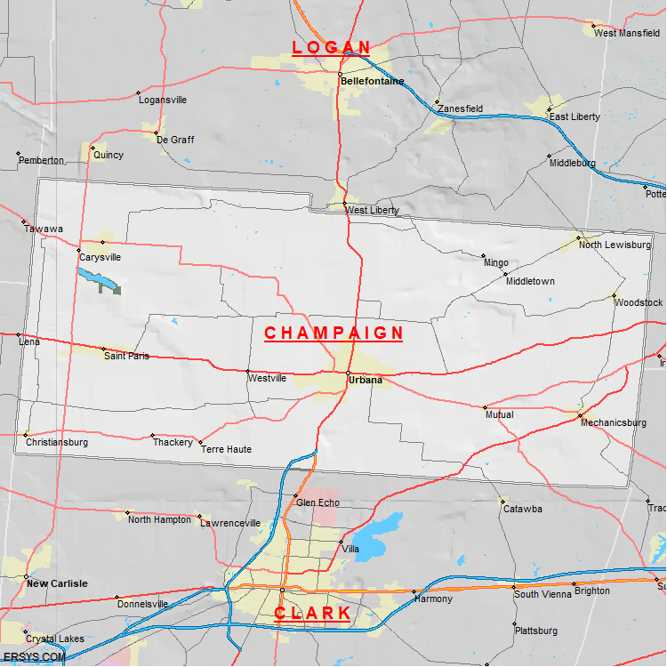 The estimated population of Champaign County is 39,444 with 15,940 households. These households are spread across 8 unique municipalties (not all shown).