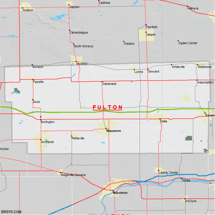 Fulton County, OH (shown in white) has 405.45 mi² of land area and 1.77 mi² of water resources. The county is bordered by: