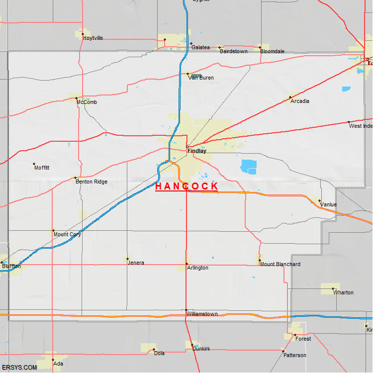 Hancock County, OH (shown in white) has 531.32 mi² of land area and 2.33 mi² of water resources. The county is bordered by:
