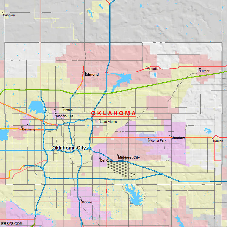The estimated population of Oklahoma County is 821,638 with 326,931 households. These households are spread across 20 unique municipalties (not all shown).