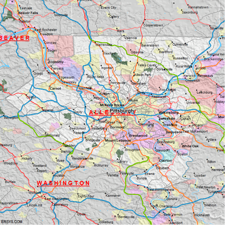 The estimated population of Allegheny County is 1,232,322 with 543,266 households. These households are spread across 103 unique municipalties (not all shown).