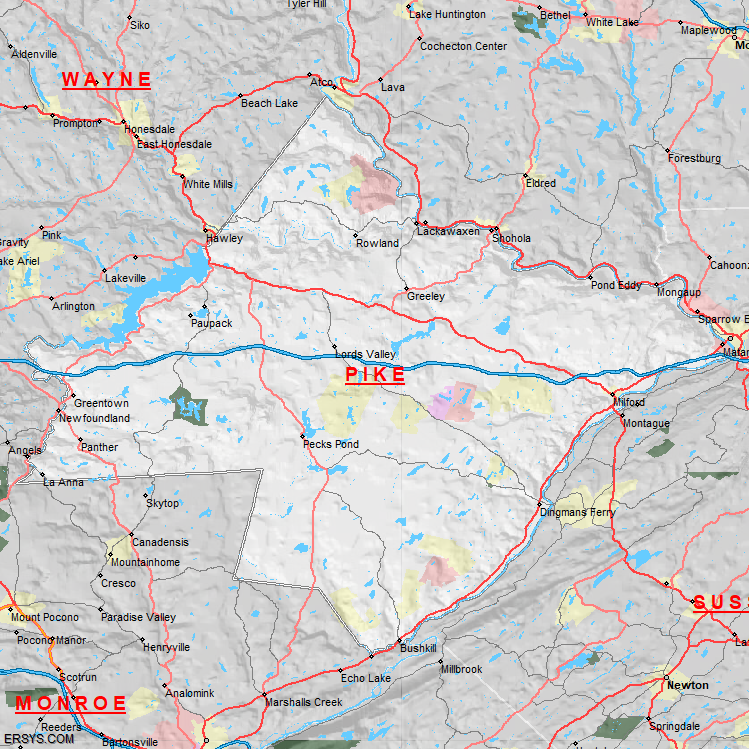 The estimated population of Pike County is 62,314 with 25,217 households. These households are spread across 14 unique municipalties (not all shown).
