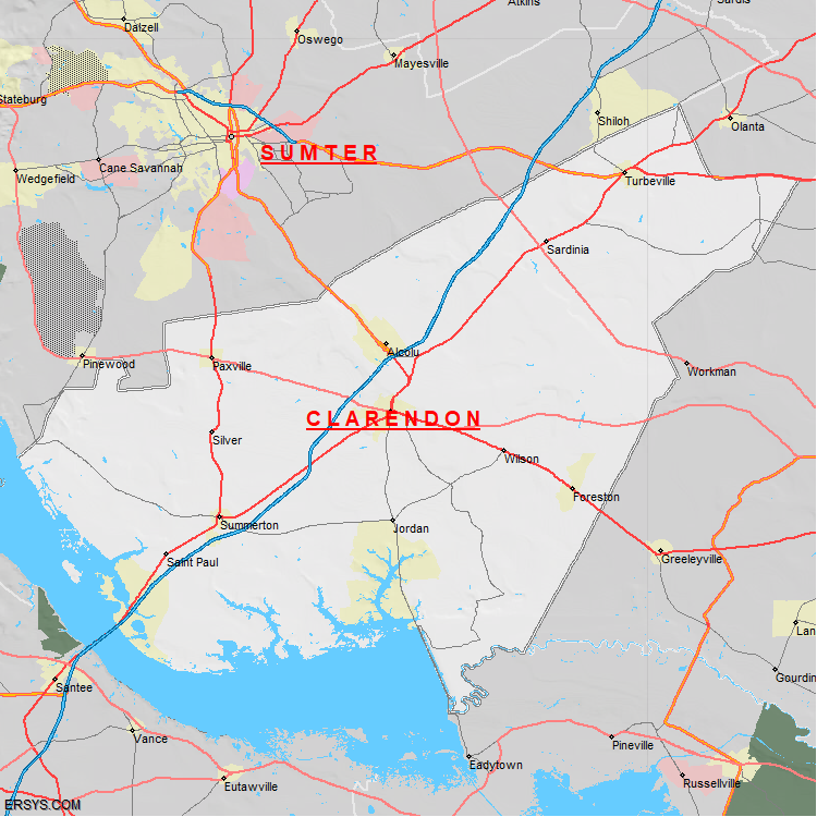 The estimated population of Clarendon County is 31,535 with 12,789 households. These households are spread across 8 unique municipalties (not all shown).
