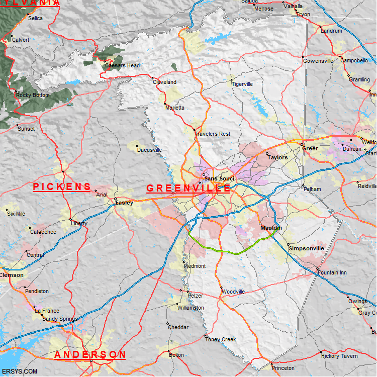 The estimated population of Greenville County is 571,195 with 227,960 households. These households are spread across 24 unique municipalties (not all shown).
