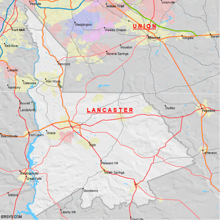 Lancaster County, SC (shown in white) has 549.07 mi² of land area and 5.98 mi² of water resources. The county is bordered by: