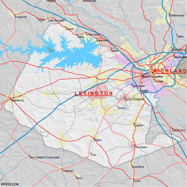 Lexington County, SC (shown in white) has 699 mi² of land area and 58.62 mi² of water resources. The county is bordered by: