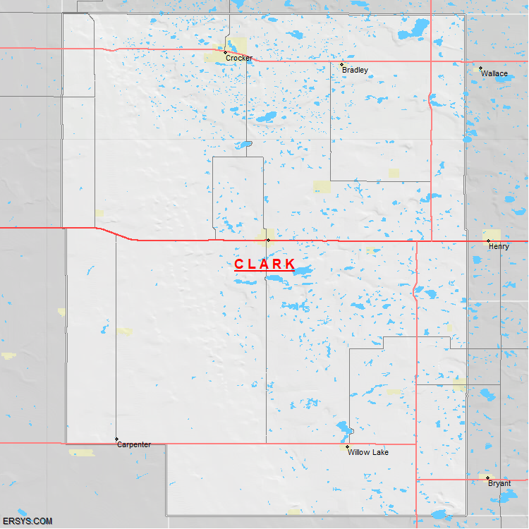 Clark County, SD (shown in white) has 957.51 mi² of land area and 9.99 mi² of water resources. The county is bordered by:
