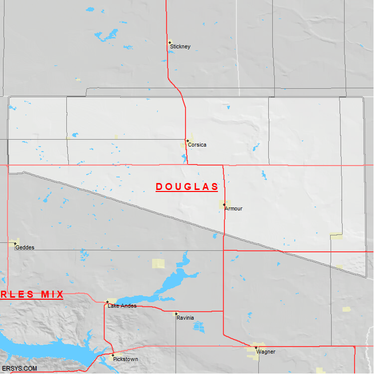 Douglas County, SD (shown in white) has 431.8 mi² of land area and 1.87 mi² of water resources. The county is bordered by: