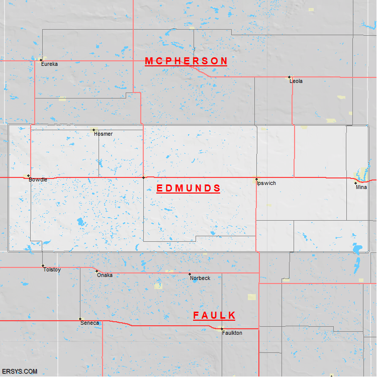 The estimated population of Edmunds County is 4,040 with 1,568 households. These households are spread across 8 unique municipalties (not all shown).