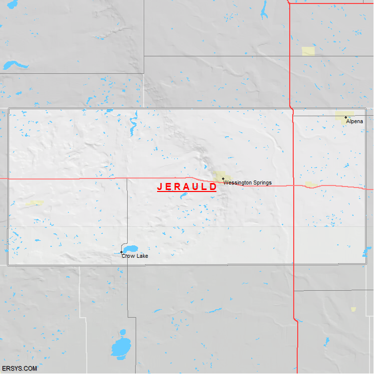 The estimated population of Jerauld County is 1,682 with 757 households. These households are spread across 4 unique municipalties (not all shown).
