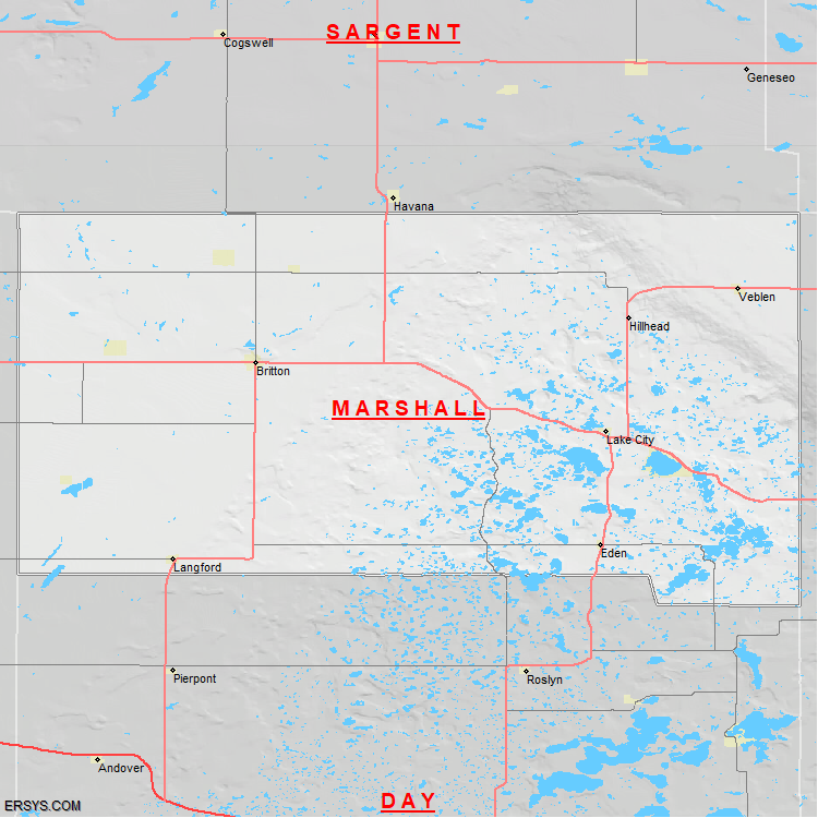 The estimated population of Marshall County is 4,364 with 1,724 households. These households are spread across 10 unique municipalties (not all shown).