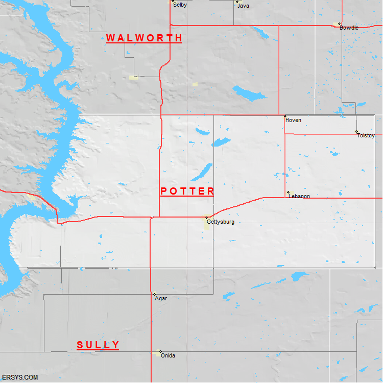 Potter County, SD (shown in white) has 861.14 mi² of land area and 37.52 mi² of water resources. The county is bordered by: