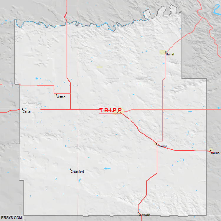 The estimated population of Tripp County is 5,719 with 2,272 households. These households are spread across 5 unique municipalties (not all shown).