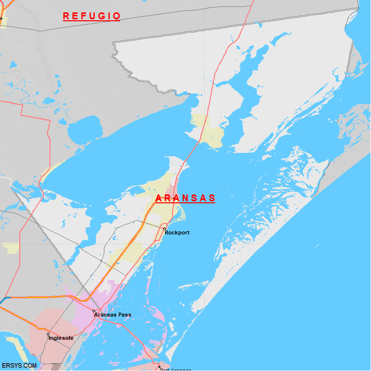 The estimated population of Aransas County is 25,450 with 10,943 households. These households are spread across 4 unique municipalties (not all shown).