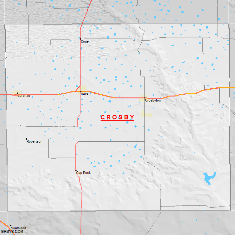 The estimated population of Crosby County is 5,127 with 1,986 households. These households are spread across 3 unique municipalties (not all shown).