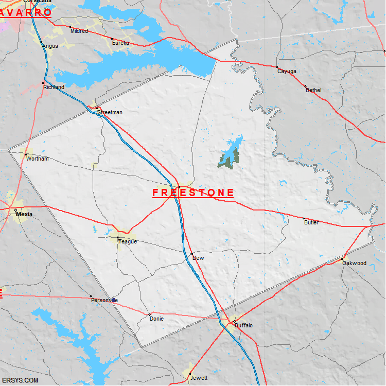 The estimated population of Freestone County is 20,622 with 7,745 households. These households are spread across 4 unique municipalties (not all shown).