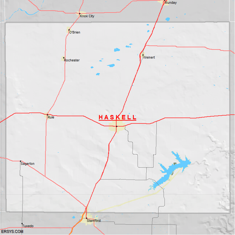 The estimated population of Haskell County is 5,422 with 2,111 households. These households are spread across 6 unique municipalties (not all shown).
