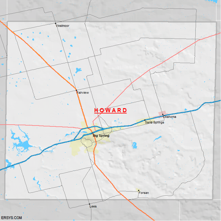 Howard County, TX (shown in white) has 900.79 mi² of land area and 3.41 mi² of water resources. The county is bordered by: