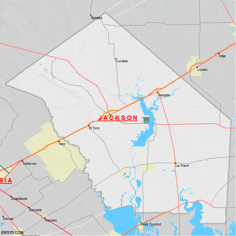 Jackson County, TX (shown in white) has 829.44 mi² of land area and 27.43 mi² of water resources. The county is bordered by: