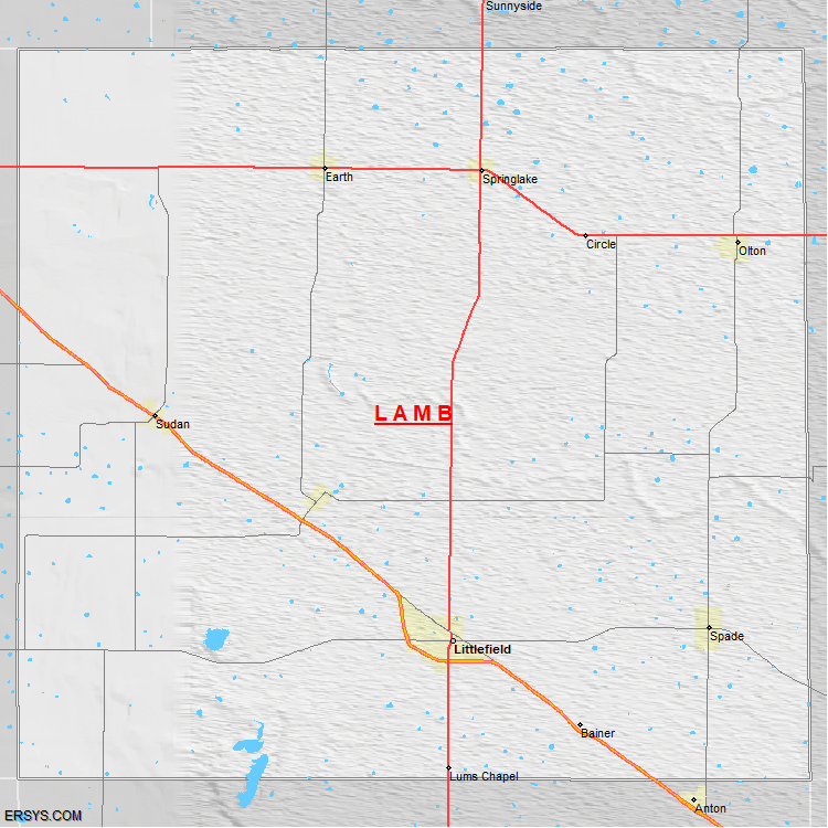The estimated population of Lamb County is 12,893 with 4,809 households. These households are spread across 7 unique municipalties (not all shown).