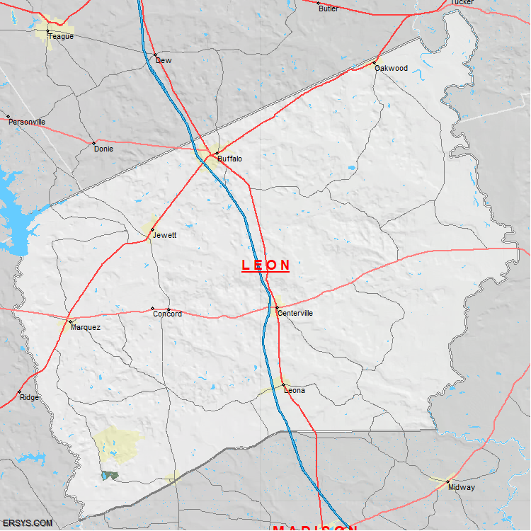 The estimated population of Leon County is 16,718 with 6,909 households. These households are spread across 8 unique municipalties (not all shown).