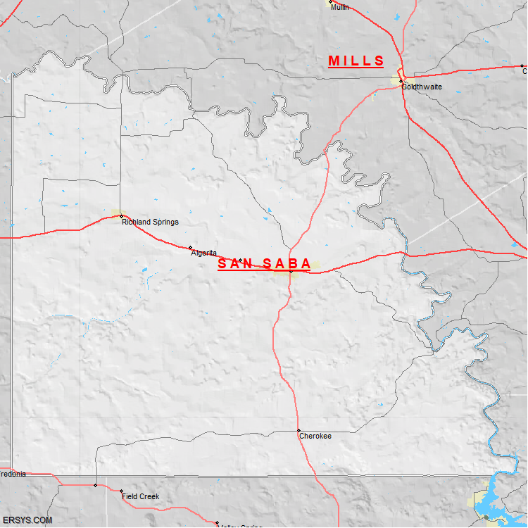 The estimated population of San Saba County is 5,898 with 2,216 households. These households are spread across 2 unique municipalties (not all shown).