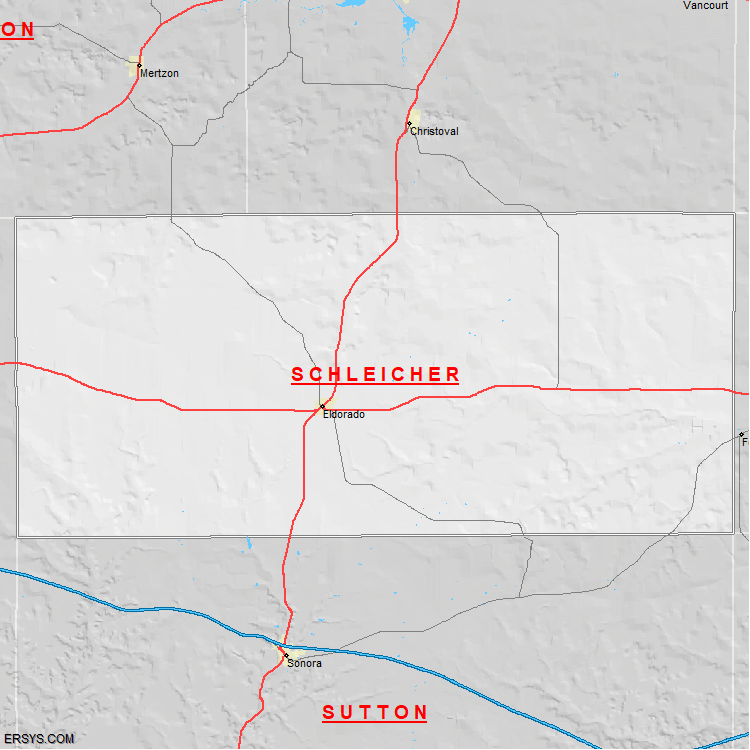 Schleicher County, TX (shown in white) has 1,310.64 mi² of land area and 0.03 mi² of water resources. The county is bordered by: